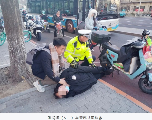“3月8日17点,现于北京中医医院规培的研究生张润泽,在东城青年沟路口抢救突然发病外卖小哥,对热心帮助群众提出表扬鼓励……”