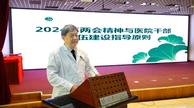 第十四届全国政协委员、党委副书记、院长刘清泉同志首先传达“两会”会议精神,从去年工作回顾、今年预期目标以及重点工作等方面系统学习了政府工作报告。他强调2024年医药卫生领域的工作目标是要提高医疗卫生服务能力。促进医保、医疗、医药协同发展和治理,深化公立医院改革。着眼推进分级诊疗,引导优质医疗资源下沉基层。加快补齐医疗服务短板,加强全科医生培养培训。促进中医药传承创新,加强中医优势专科建设。北京中医医院传承、创新、发展好中医药事业是责任所在、历史所向,要始终坚持创新发展中医药事业,积极促进人工智能等高新产业与中医药的升级融合,不断强化中医药技术创新。