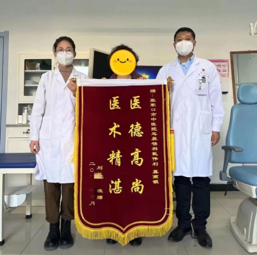“家门口就有北京专家出诊,省钱省时效果好,真是太方便了!”家住张家口市的刘女士,由于突聋到张家口市中医院耳鼻喉科就诊,通过中西医结合治疗后听力恢复正常,特地送来锦旗表示感谢。