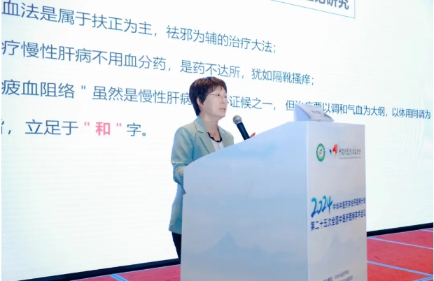 孙凤霞教授聚焦新药开发,介绍了院内特色制剂健脾疏肝丸在脂肪肝治疗中的临床成效;并在大会分享了《益气和血法治疗肝硬化临床研究》,为肝硬化治疗提供了新的思路。