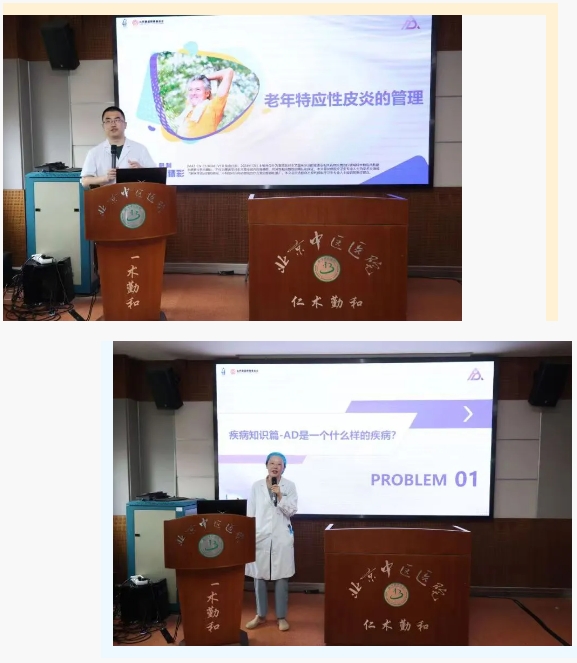 此前的5月24日皮肤科还举办了 “爱肤相伴,光彩照未来”为主题的特应性皮炎患教会活动。湿疹/特应性皮炎专病门诊主任医师李伯华为患友介绍了老年特应性皮炎的诊断和治疗方案,并对特应性皮炎控制评分工具adct进行了介绍。朱慧婷介绍了特应性皮炎常见问题比如特应性皮炎有没有传染性,特应性皮炎的发病机制,常见诱因和皮肤屏障功能的概念。各位听众都对自己感兴趣的方面向专家进行了提问,现场气氛热烈。