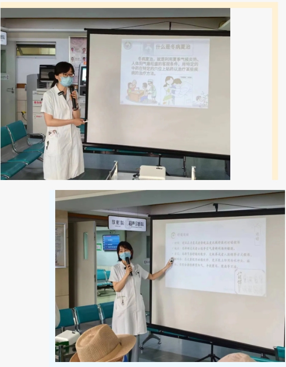 呼吸科五位专家带来专业的健康讲座。活动现场,郭丽娅副主任医师讲解“冬病夏治三伏贴”的原理与效果。她指出“三伏贴”是根据中医“春夏养阳”的理论发展而来,通过刺激穴位、药物渗透来激发人体经络之气,达到扶助阳气、祛除伏邪的目的。李雪副主任医师则围绕“夏至养生宜与忌”进行了详细阐述,提醒大家在夏季养生中应注意的要点。