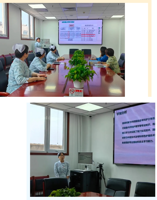 6月11日,北京中医医院护理部副主任裴晓璐、关丽以及临床带教科室护士长出席开班典礼。裴晓璐对各位学员的到来表示欢迎,详细介绍了医院的发展历程、护理学科建设、中医护理特色、科室总体教学计划与临床实践要求。她指出,中西医专科护士的培养是提升护理水平的重要一环,希望学员借此学习机会,进一步提高自己的专业素养和实践能力。会后,临床带教老师为各位学员现场演示拔罐、艾灸、耳穴压丸等中医护理技术,为后续临床的同质化操作提供参考。培训中期,关丽、教学主管王东宣对带教科室的带教老师、带教计划落实情况以及学员进行督导检查。