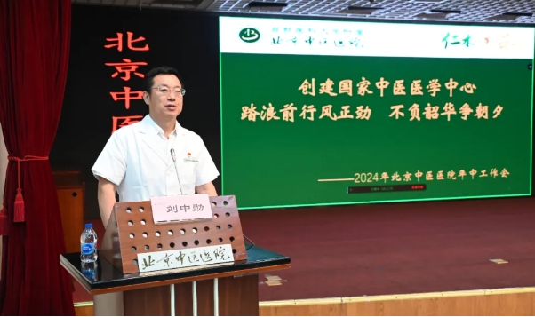 党委书记刘中勋做了题为《创建国家中医医学中心 踏浪前行风正劲 不负韶华争朝夕》的上半年工作总结及下半年工作部署。他对标对表医院党委年度十大工作目标,以全面加强党的建设为主线汇报了上半年重点工作;以党的六大建设为纲领,提出下半年工作思路,强调党委要以党建为引领,党的二十届三中全会精神为指引,巡察整改为契机,加快新院区和国家中医医学中心的建设,深入实施科技创新人才发展战略。强化优势特色,调整优化结构,拓展创新提高,固本强基超越,着力推动医院高质量发展。