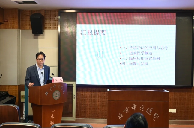 刘玉超主任医师主讲了《道家医学在养生长寿方面的应用与思考》,揭示了道家医学对生命奥秘的独特见解,对精气神三者的独特认识与调养手段,并以实际案例展示传统道医功法如何在临床处方、针灸、推拿时发挥独特作用。