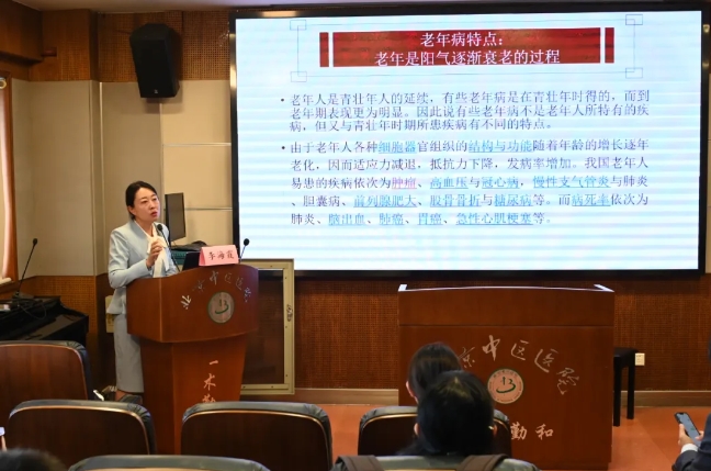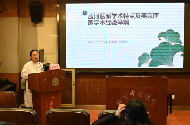 心血管科主任尚菊菊主讲了《孟河医派之燕京名医老年疾病防治特色》,梳理了孟河医派的历史传承脉络和学术特色,深入剖析了名医许心如的学术经验,为学员们提供了丰富的历史背景和学术参考。