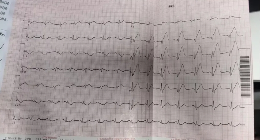 7点16分张大爷抵达医院大门。7点17分急诊科医师为他完成了首次心电图检查,心电图提示V1-V5导联ST段抬高0.1mv-0.3mv,V2-V5导联T波高尖,急诊科医师初判急性冠脉综合征(ACS),呼叫胸痛中心。