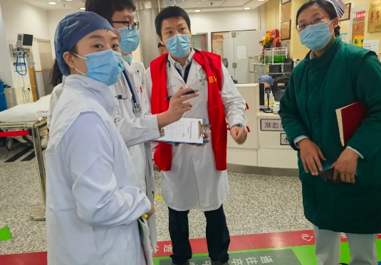 本次演练设计了外伤伴胸痛、卒中、眼科与心理创伤、紧急手术及用血伤员、需要行骨科手术的伤员共五人,每个救治组设置了考核员两位,分别从救治人员到位情况、诊疗与鉴别诊断是否完备,医护配合情况、处置及时得当等方面进行了考核。急诊科全体医护人员以及放射科、超声医学科、检验科(含血库)、麻醉科、心身医学科、骨伤科、普外/肿瘤外科、眼科、卒中中心、胸痛中心、保卫处(含警务室)等多个科室的医护人员迅速到位,各司其职,诊疗准确,从容有序,展现了出色的团队协作和应急处理能力。演练结束后,杨国旺带领医护及管理团队对演练过程中发现的问题进行总结和分析,对救治的流畅度、医护的紧密配合等出色表现给予肯定,同时提出伤情持续评估及报送的意识不足、总指挥与各方沟通不充分、救治人员标识不明显等问题,各部门相应提出了改进措施。