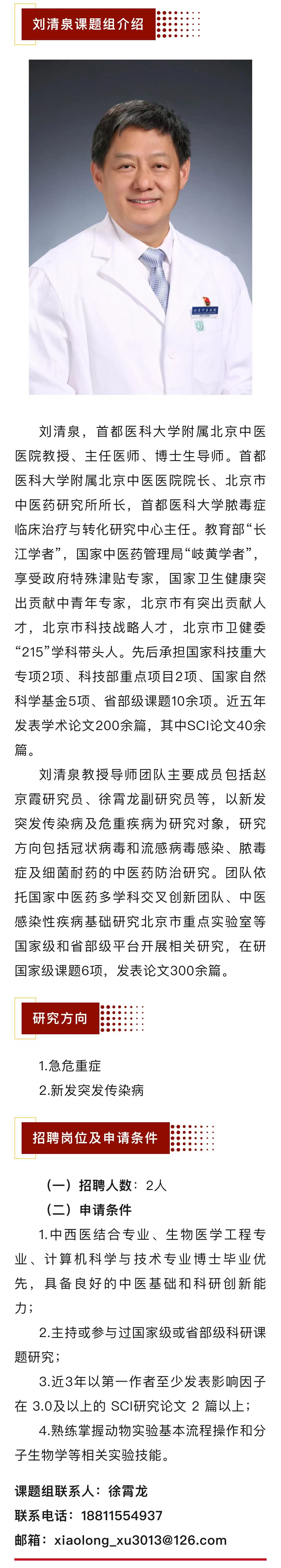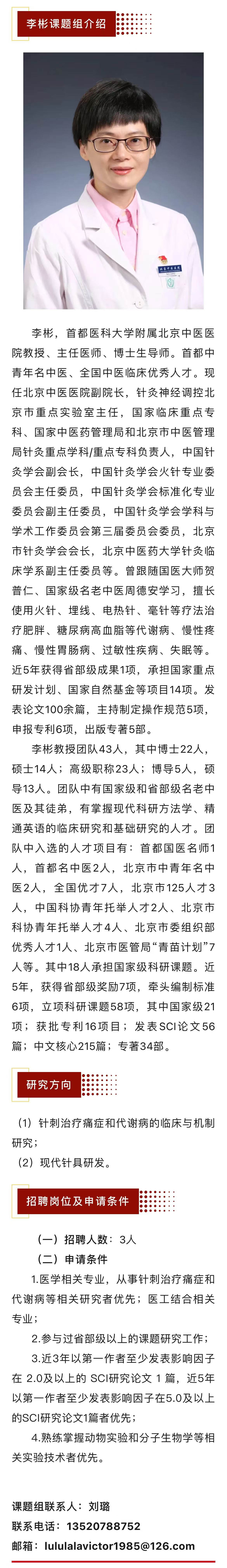 (2)各课题组联系人:详见各课题组招聘公告具体内容