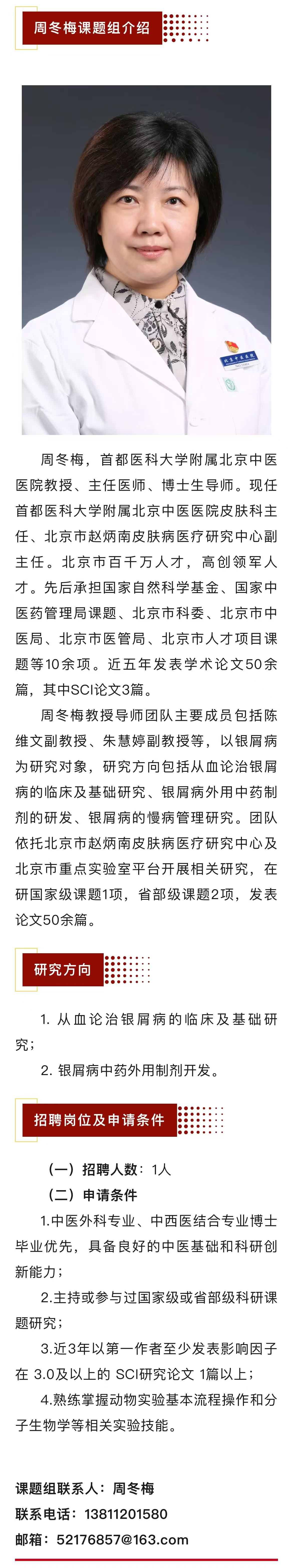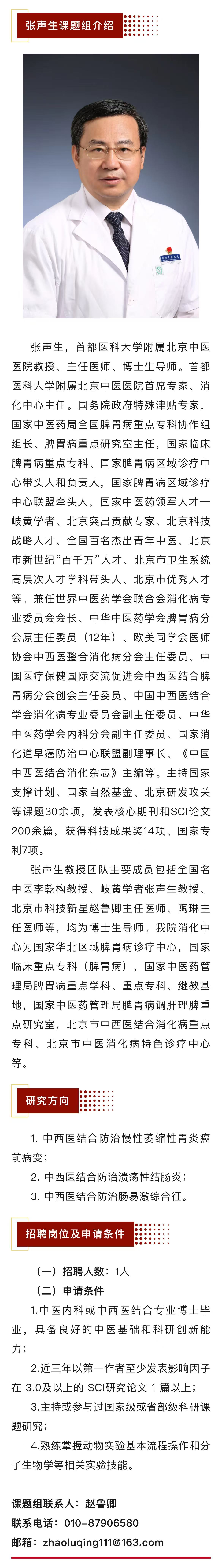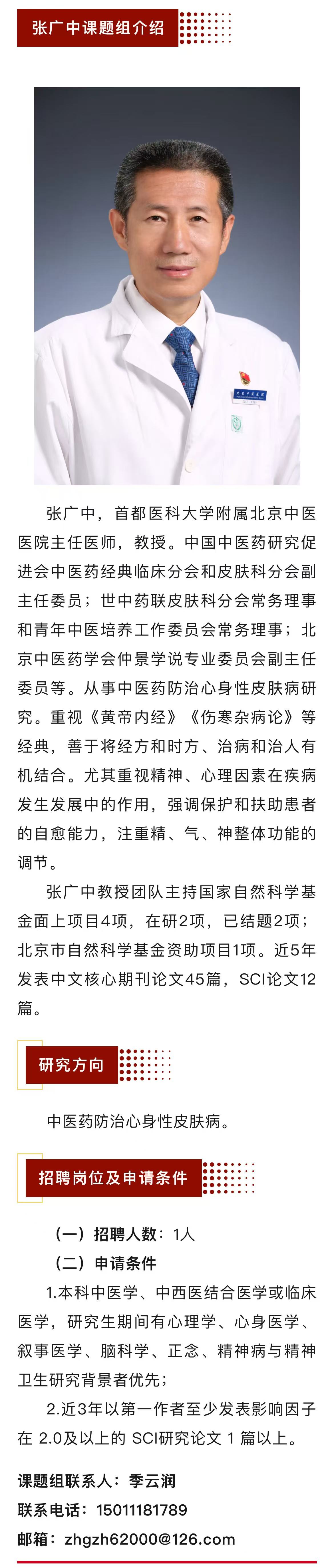 申报者与意向导师沟通后发送个人应聘材料电子版到邮箱:rlzyb@bjzhongyi.com,邮件请以“博士后申请应聘材料-申请导师姓名-本人姓名”为标题进行报名。