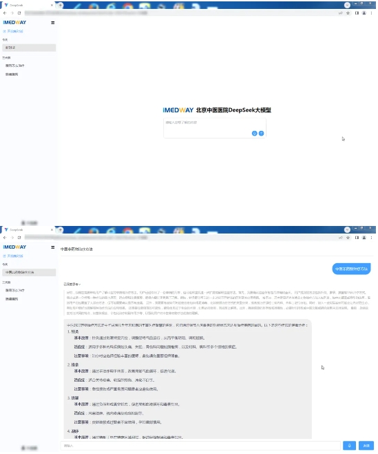 “医问DeepSeek”是基于DeepSeek R1开发的临床工具,助力医生提升工作效率与医疗安全性。它能够迅速提供疾病诊断、治疗方案和药物信息,节省医护人员查找资料的时间。借助强大的DeepSeek大模型,问DeepSeek可智能辅助诊断,分析患者症状和检查结果,给出诊断方向和建议,帮助医护人员快速准确判断病情。由于模型完全本地化部署,数据安全和隐私性得到了保护。北京中医医院将加速大模型应用的落地,为患者带来更优质的医疗服务。医院将加快算力设施建设,为大模型运行提供强大支撑。同时,深化大模型与业务系统的融合,让智能技术贯穿医疗服务全流程。未来,医院将逐步推出智能预问诊、门诊AI语音生成病历、病历AI质控等功能,为患者带来更便捷、高效的就医体验,助力智慧医疗发展。