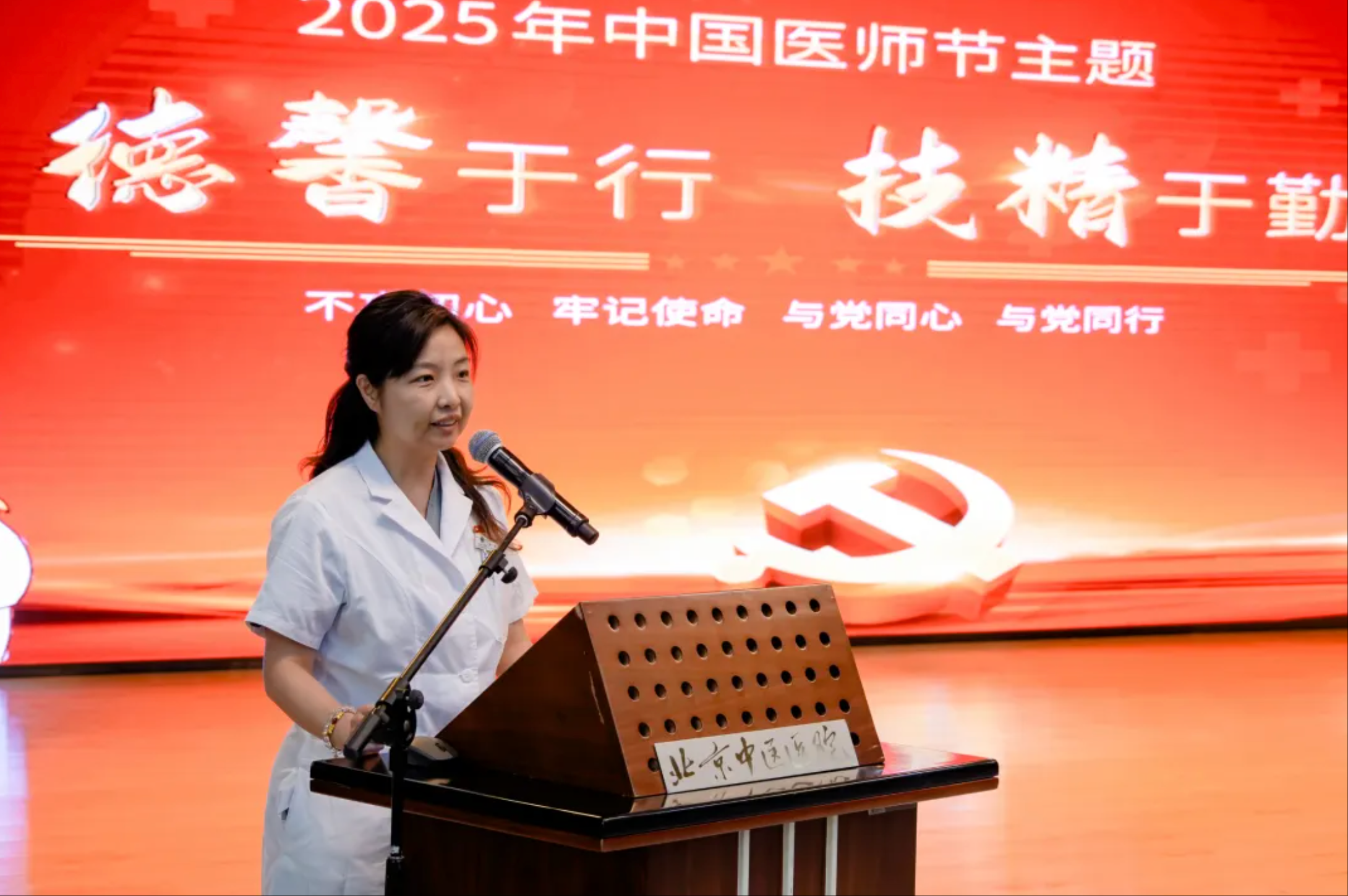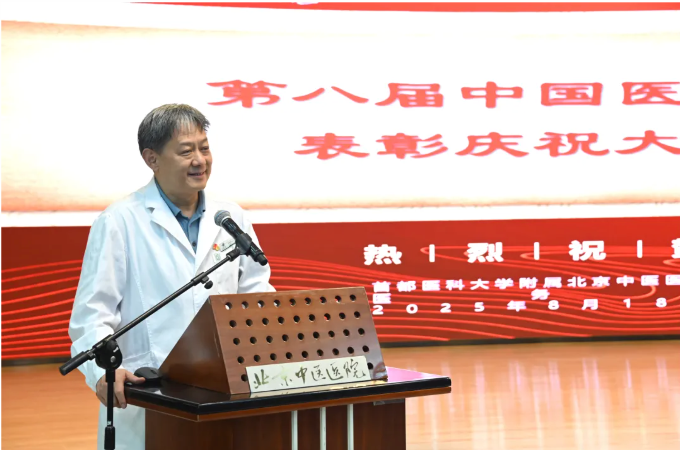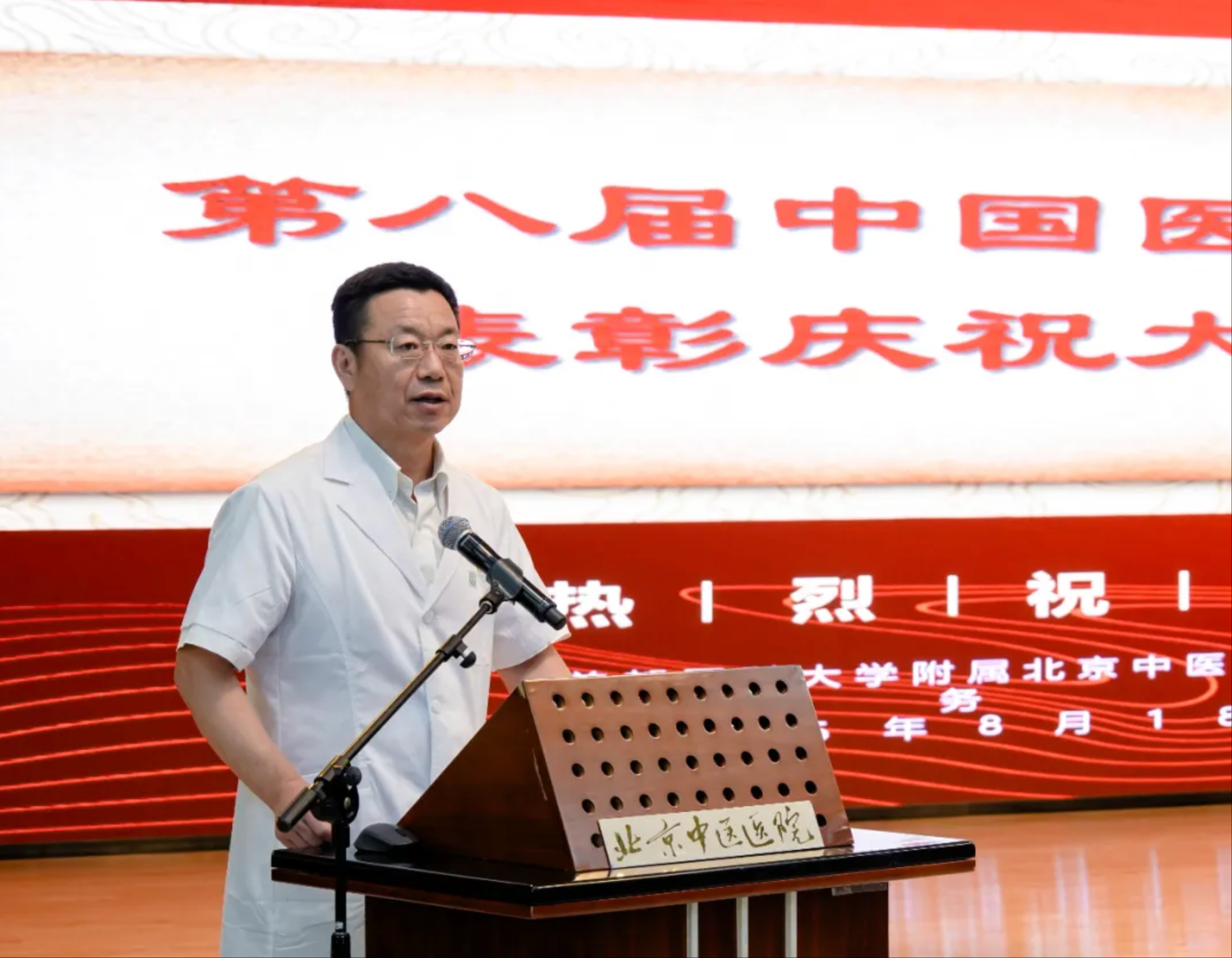 8月18日,首都医科大学附属北京中医医院以“德馨于行,技精于勤”为主题召开第八届中国医师节表彰庆祝大会。党委书记刘中勋,党委副书记、院长刘清泉,党委副书记、纪委书记程军,党委委员、副院长杨国旺,副院长李彬、郭伟、汪红兵,党委委员、工会主席徐春军出席大会,巴彦淖尔市文化旅游广电局党组成员、副局长云盛,巴彦淖尔市歌舞剧院副院长王欣参会。全院干部职工近200人参加此次活动。