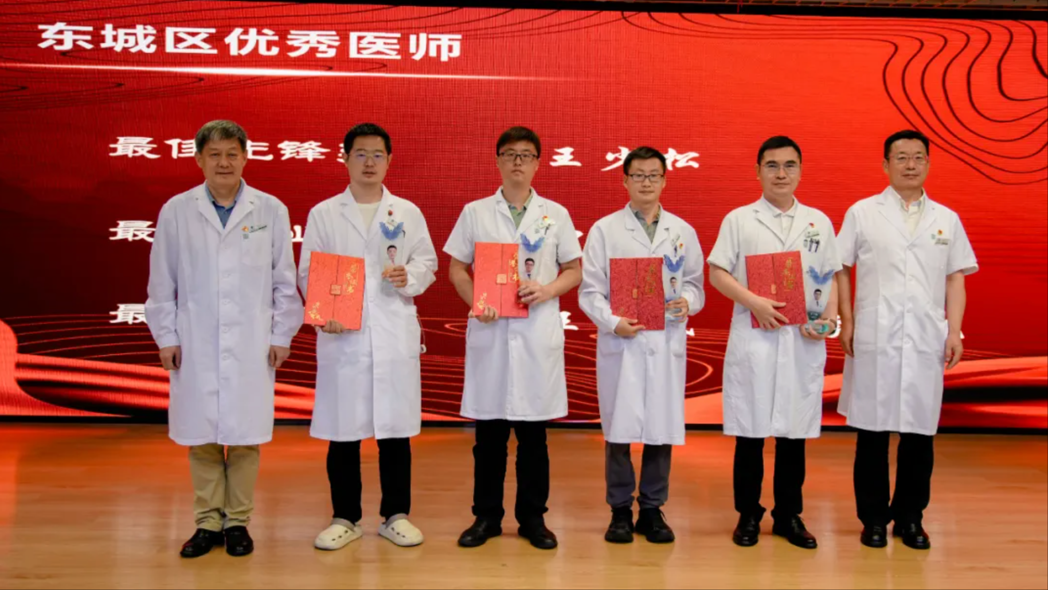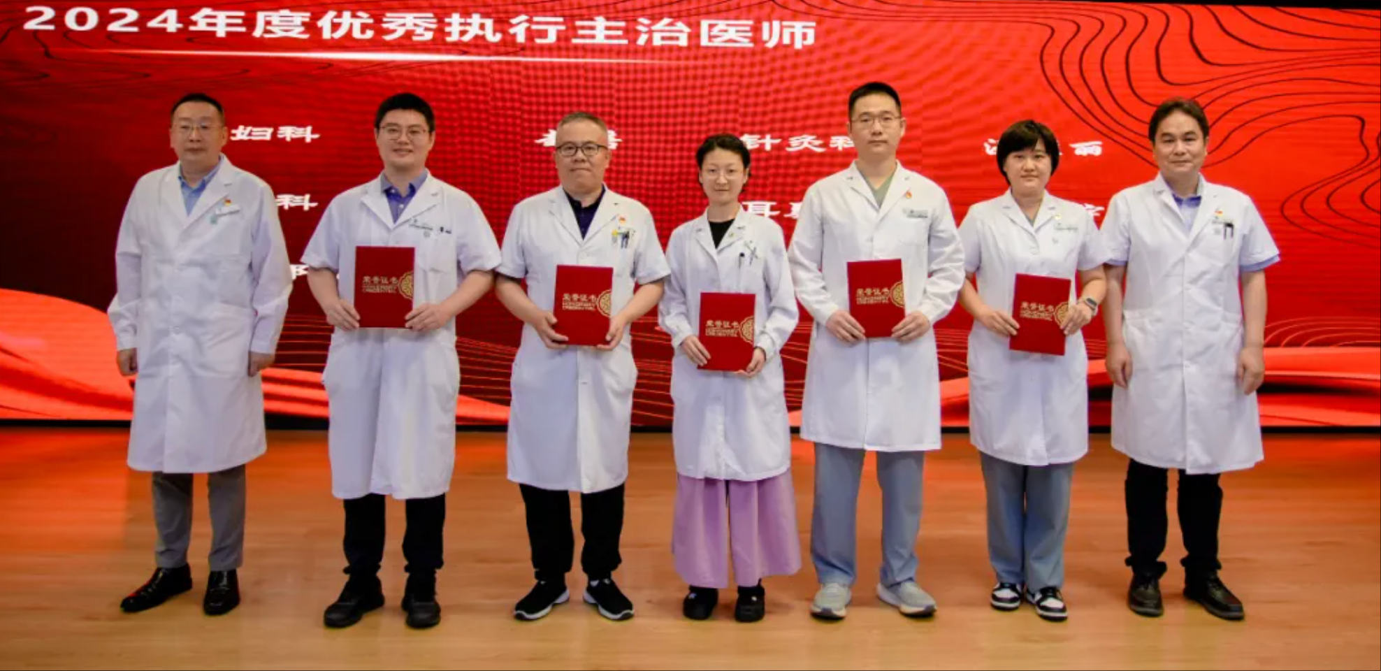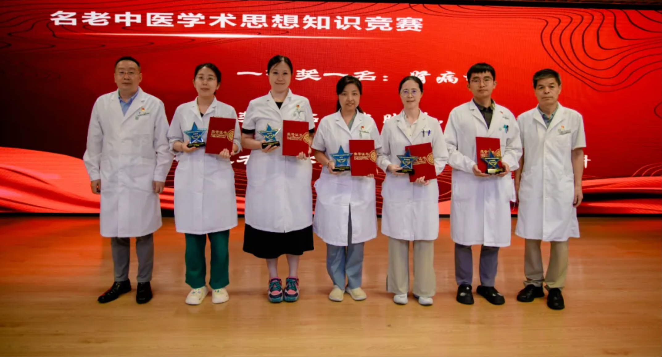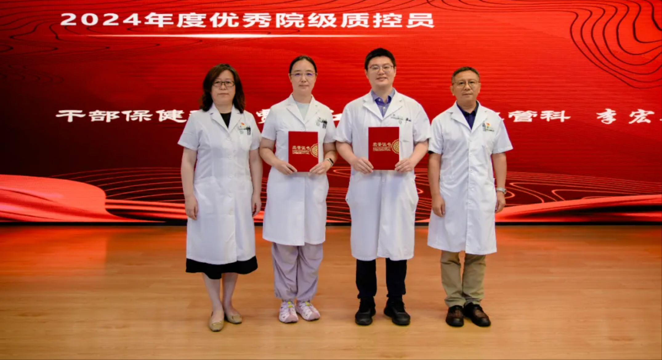 首先颁发的是“返聘医师最佳贡献奖”,为感谢他们的辛勤付出,医院特别为在2024年度门诊接诊量前10位的北京中医医院退休老专家颁发“返聘医师最佳贡献奖”,获奖代表李乾构、王麟鹏、佟秀民、王悦芬四位老专家上台领奖。