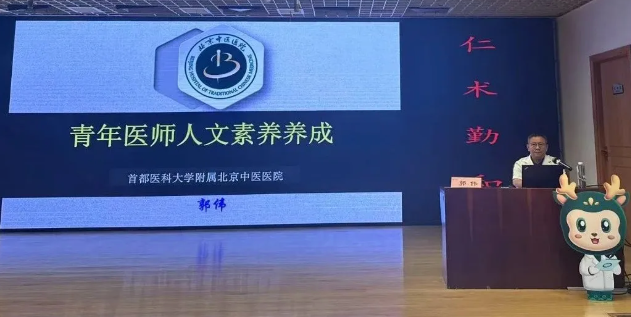 副院长郭伟作“青年医师人文素养养成”讲座,讲解了医学定义、医学发展史以及针对不同类型风格的人采取不同的沟通技巧,便于更好地开展临床工作。