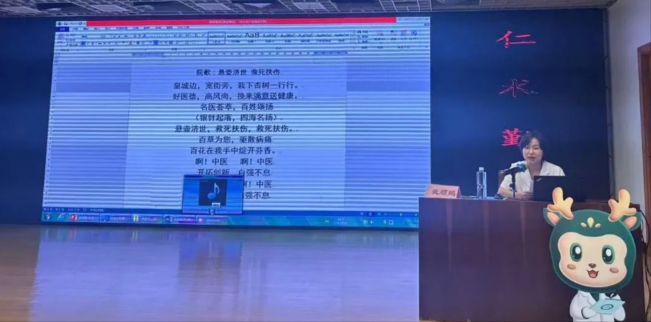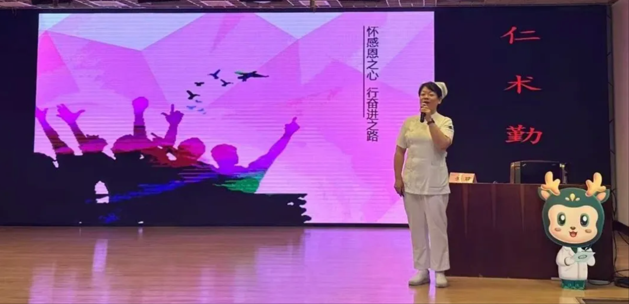 医务社工部副主任高梦然讲解院歌歌词背后的意义,增强新员工归属感和认同感。