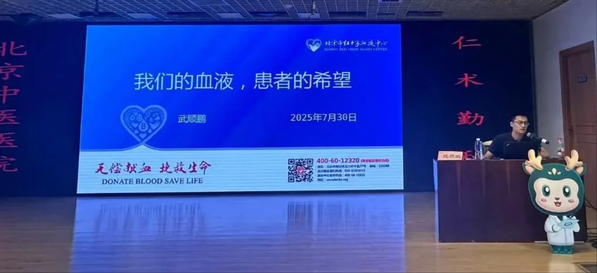 北京市血液中心武顺鹏为新员工进行无偿献血的科普讲座。32名新“中医人”成功献血6320ML。每一袋热血都是“敬佑生命、救死扶伤、甘于奉献、大爱无疆”职业精神的生动体现与知行合一。