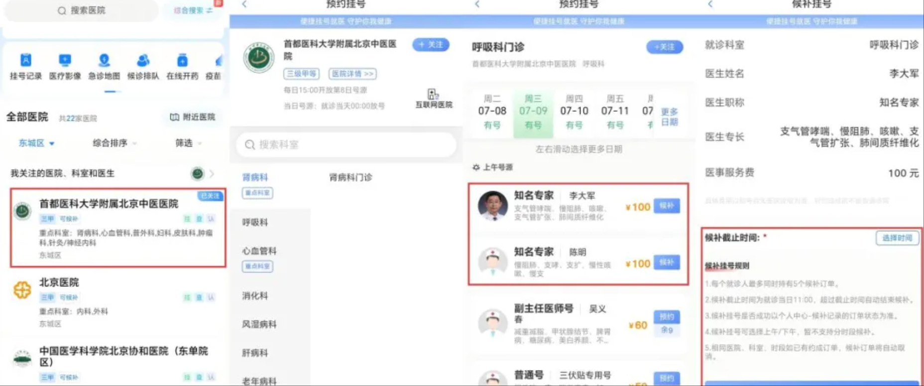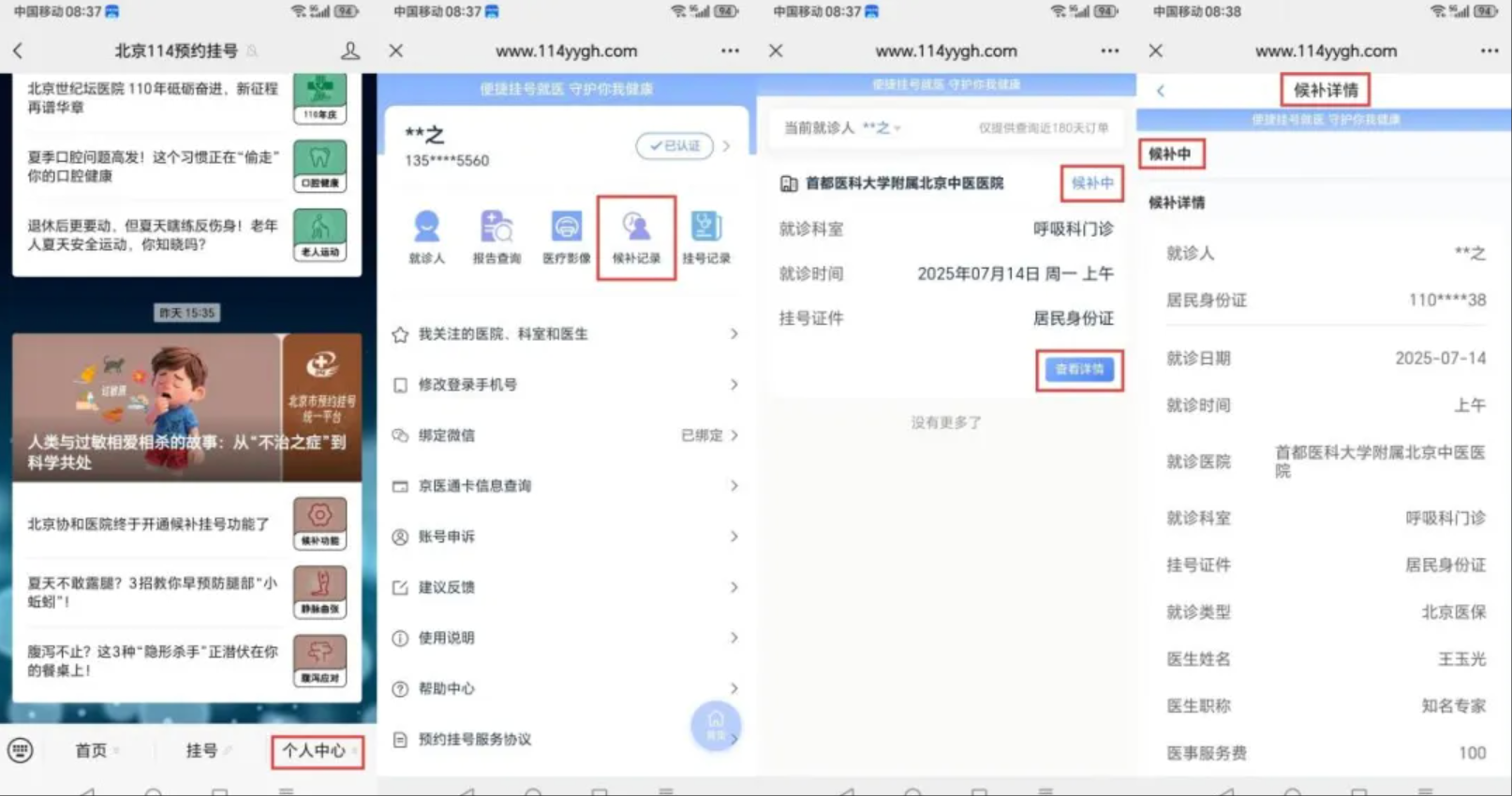 重要提示:完成候补申请不代表已成功挂号。最终结果请务必以个人中心“候补记录”的订单状态为准,并留意手机短信通知。