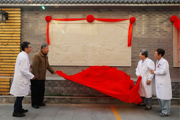 最后,名老中医代表、党员代表、职工代表和青年代表共同为文化墙揭幕。