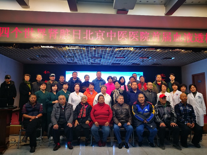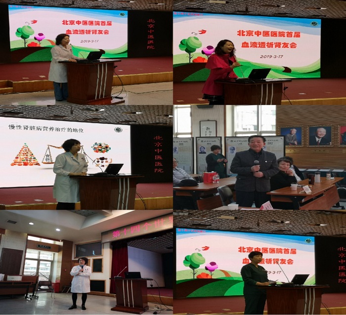 3月17日,肾病科血透室肾友会在我院举行,肾病科主任赵文景及临一党支部书记暴莉莉参会,血透室医护人员、血透患者及部分家属共聚一堂。活动中不仅有医生为大家进行健康知识讲座,带领大家练习八段锦,还有多名透析患者及家属为大家讲授自我管理经验并奉上精彩节目。赵文景主任表示,肾脏疾病是一个“沉默的杀手”,其发病隐匿,因为早期症状极其轻微或根本没有症状而容易被人们忽视,但慢性肾脏病若不断进展危害巨大,不仅导致尿毒症进入透析,还会增加心脑血管疾病的发生率和死亡率。因此,预防和早期发现肾脏病变就显得十分重要。我们希望通过本次系列活动提高大众对肾脏健康的重视,也让患者认识到肾脏疾病早期防治及规范化治疗的重要性,了解中医药在防治肾脏病中的作用,呼吁医患配合,共同呵护肾脏健康。北京中医医院肾病科一直致力于中西医结合防治肾脏病,坚持做慢性肾脏病的贴心陪跑者!(肾病科)