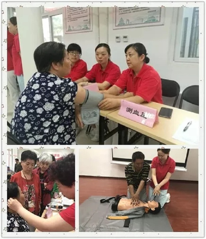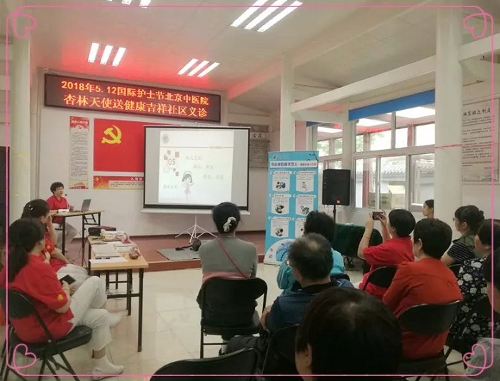 15名来自各科室的护理人员携带医疗器械、宣传资料来到东城区景山街道吉祥社区,针三病房护士长宋书香作“小耳穴大作用”讲座,深入浅出地讲解了耳穴贴压在治疗预防相关疾病和保健方面的作用,受到老百姓的热捧,耳穴贴压的治疗台前排起了长龙。护理部主任郝丽以真实案例,强调学会急救、自救,掌握心肺复苏技术的重要性。护理人员现场讲解演示心肺复苏方法。消化科、风湿科、心血管科、皮肤科、肿瘤科的护理人员耐心解答百姓的问题,发放宣传资料、讲解饮食管理在健康养生中的作用等。随后,进行了测量血压、耳穴贴压体验等活动,深受居民欢迎。