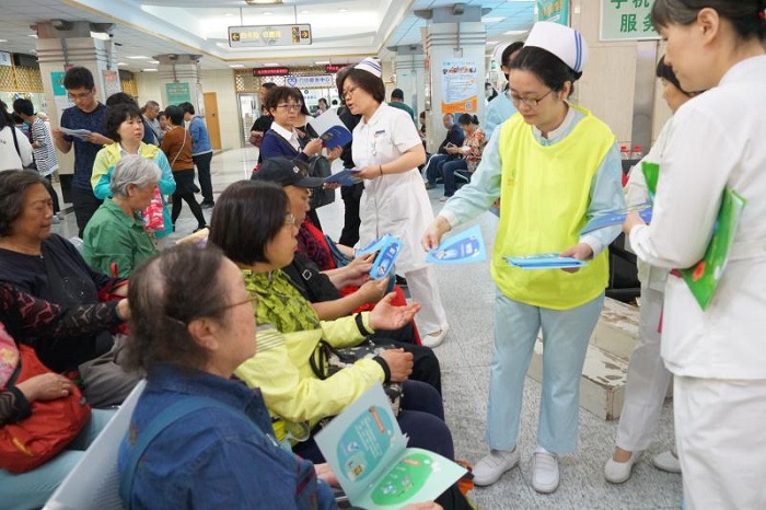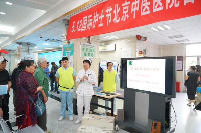 5月9日上午10点,护理部在门诊大厅举办5.12国际护士节杏林天使送健康-呵护静脉义诊活动。