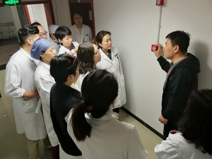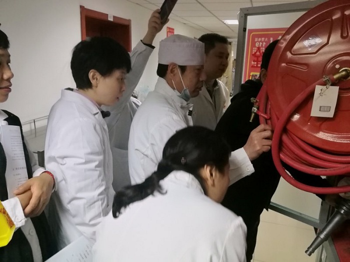 保卫处保安队长为药师们演示消防安全面罩等消防器材的使用方法并到药学部重点部门现场模拟现场灭火及逃生。此次演练活动使药师们切身体会到消防安全的重要性,熟知“灭火应急疏散程序”,明确自己的职责。