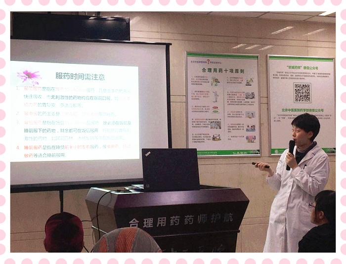 4月11日下午,第43期“患者合理用药科普讲座”开讲。药学部副主任李文喆以《服用药品的八大注意事项》为题,就患者关心的服药时间、服药后的注意事项、药品保存等问题,进行深入浅出地讲解。随着人们健康保健需求的不断提高,越来越关注药品合理使用的问题。2016年起,我院药学部组织骨干药师在门诊大厅开展“患者合理用药科普讲座”。至今已经举办了42期,累计参与患者2万余人,切实解决患者生活中各类用药问题。
