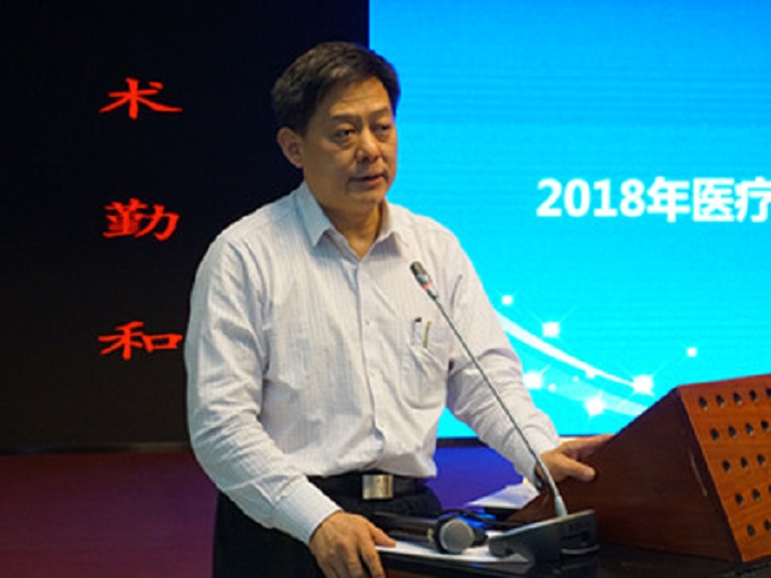 4月2日下午,我院召开2018年医疗工作会暨全体医师大会。院长刘清泉、副院长刘东国以及医务处、门诊部、院感办、医患办、纠风办等部门负责人和医师代表参会。