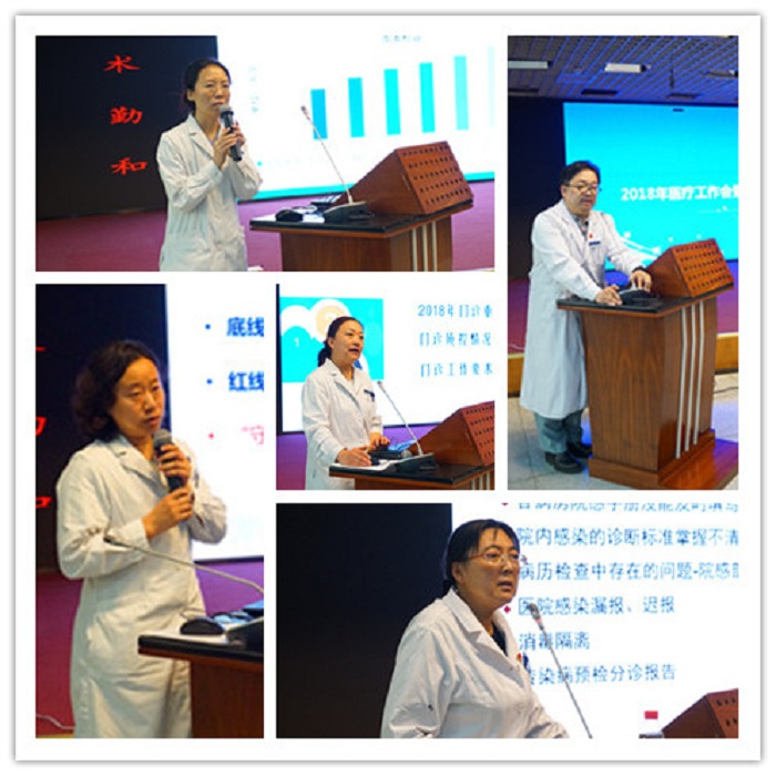 会上,医务处、门诊部、院感办、医患办、纠风办等部门分别发言,总结2017年工作成效,分析存在的问题和不足,部署2018年的重点工作并对重点任务进行培训。