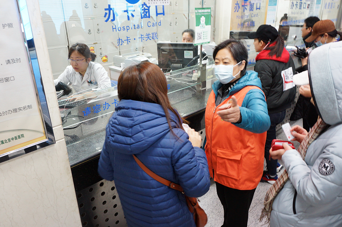“大姐,怎么操作机器来的?来了几次了,还是弄不明白。”50多岁的张大妈自助挂号时遇到了麻烦。志愿服务者王老师熟练地操作机器,帮张大妈挂好号。拿着挂号条,张大妈感慨地说:“看上去您还比我长几岁呢,这机器怎么用的这么熟练呢!”