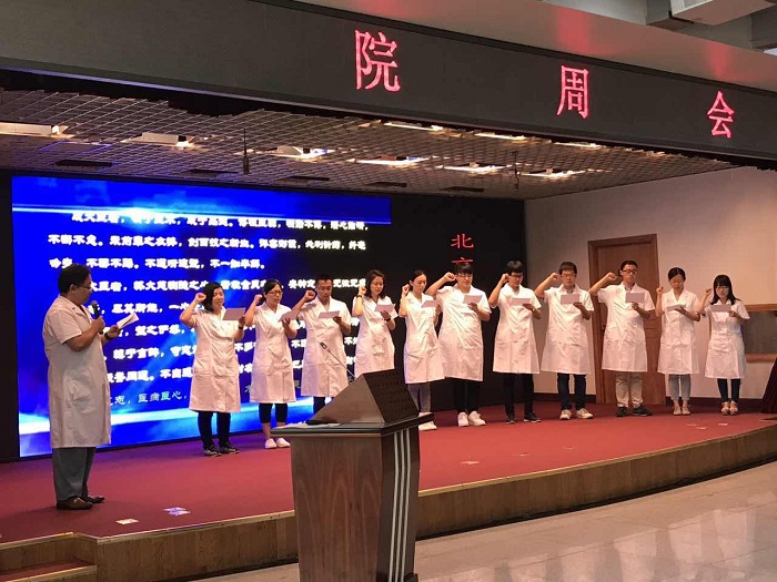 进行医师入职宣誓,已经成为我院行风教育管理的一项例行工作内容。宣誓不仅是一种形式,更多的是对新入职医师的一种要求。他们是注入我们医院的新鲜血液。而对于他们来说,加入北京中医医院,同样使他们的血管里也流淌着“宽街”的血液,骨子里也会深深地烙上“宽街”的烙印,无论走到哪里都代表着“宽街”。希望新入职医师能够秉承北京中医医院“仁术勤和”的院训,在未来的职业生涯中努力践行医者的责任与使命。 (医务处)