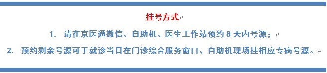 我院现开设80个专病门诊,全面覆盖所有临床科室。各个专病种类均为所在科室的优势病种,疗效确切,特色鲜明,形成以各科知名专家为核心的团队就诊模式,通过层级转诊让您获得知名专家定期诊疗。患者仅需“按病索医”,通过京医通微信、自助机、医生工作站提前预约,或在专病出诊当日挂该名称的专病号即可就诊,无需导医问询,仅需知道病名即可挂号就诊并获得优质的医疗资源。