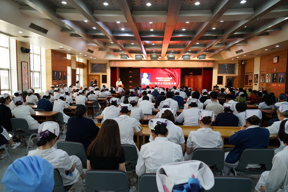 5月12日,“北京中医医院2017年5·12国际护士节庆祝大会”在多功能厅隆重召开。院党委书记信彬、院长刘清泉、副院长王大仟、党委副书记程军、副院长王笑民、王国玮、徐春军、刘东国、工会主席张金霞、护理老前辈、科室负责人、“发展中国家护理培训班”学员及全院百余名护理同仁参加。