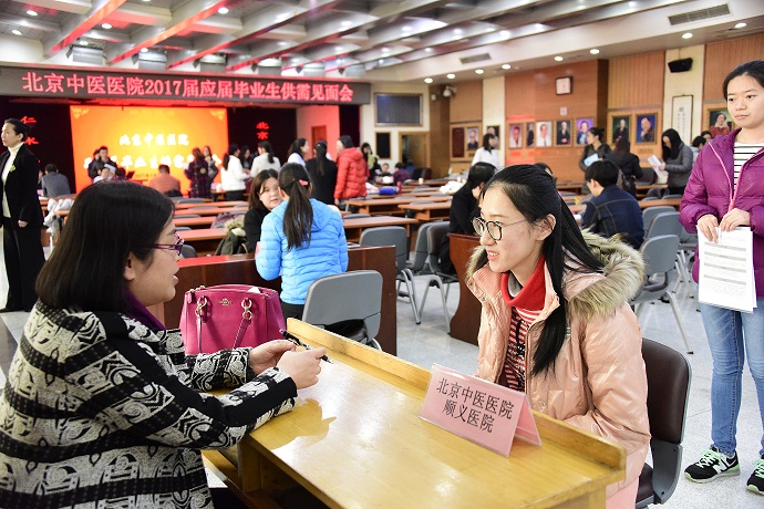 3月2日下午,教育处在多功能厅组织召开第二届(2017届)应届毕业生招聘供需见面会,邀请了北京市朝阳区卫计委、北京市宣武中医医院、北京中医药大学附属护国寺中医医院及北京市房山区、丰台区、顺义区、平谷区、石景山区、延庆区、大兴区、门头沟区、昌平区等多家区中医医院的代表出席,我院应届毕业生积极参会。会上,院领导首先致辞对大家与会表示欢迎,用人单位代表先后就本单位概况及用人岗位需求做了简要介绍。此后,同学们与各用人单位进行了一对一的交流并投递了简历。