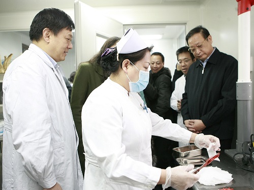 最后,王国强一行来到急诊科,看到医护人员紧张忙碌的身影,王国强说:“我代表国家卫生计生委、国家中医药管理局来看望大家,对大家一年来辛勤的工作表示慰问。医护人员十分辛苦,大家在紧张忙碌的工作中,在保证医疗质量的同时,还在不断创新,医院还在向前发展。新一年里,希望大家继续努力。去年年底,全国人大通过了中医药法,我们的国医有了国法做保障,会得到更大的发展,希望大家努力工作,为我们的中医药事业做贡献。”