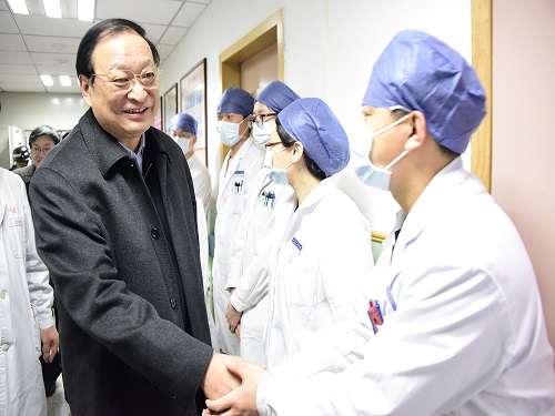 走进ICU,王国强一行了解了呼吸机等现代科学技术在中医医院里的使用情况。刘清泉院长介绍说:“近些年,我们研究发现呼吸机就像是中药的参附汤,起到了回阳救逆的作用。中医有宗气理论,宗气积于胸中,出于喉咙,以贯心脉,而行呼吸。宗气不足表现为阳气不足和脾胃不足。当患者出现阳气不足时,我们使用呼吸机,先把阳气补上来,再利用中药调脾胃,脾胃之气足了,全身运化就正常了,这时再把呼吸机撤下来。”王国强指出:“中医医院要发挥中医药特色,做到西为中用,既有中医临床思维,又要灵活使用现代科技,运用中医思维做急救。”