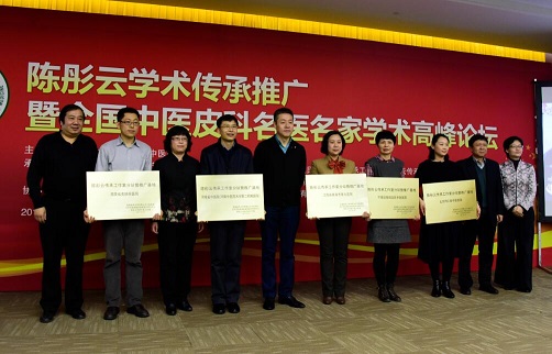 之后,陈彤云传承分站暨全国推广基地的宣布挂牌,入选陈彤云全国传承分站的是:海南省皮肤病医院、河南省中医院、江西省南昌市第九医院、宁夏回族自治区中医医院、北京同仁堂中医医院,这五家医院均有曾经长期跟随陈彤云教授系统学习中医皮肤科的专家。此次挂牌,意在传承推广陈彤云学术思想和临床经验,在全国范围内深入开展名医传承工作,建立一支更广泛的传承团队,使区域内的传承工作扩大到全国范围,使名医学术经验能更广泛地落地、生根,结出硕果!