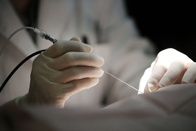 乳管镜全称为乳腺导管内窥镜,是一种微型内镜,其直径不足1毫米,通过患者乳头溢液的小孔即可将其插入乳管,医生借助于乳管镜,可以一目了然地观察乳管内病变情况,如果属导管扩张、乳腺导管炎症患者,经纤维导管镜局部冲洗后,即可减轻或终止乳头溢液;而对镜下可疑的病变部位,可进行乳管镜指导下导丝定位,方便精准微创的切除肿瘤。该技术操作简单,安全,病人痛苦少,是一项经济、有效的临床诊治技术。 (乳腺科)