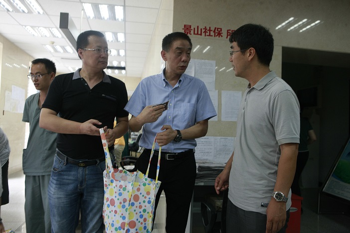 北京中医医院隶属景山街道,长年以来,街道办事处对于医院各方面工作给予了大力支持。信彬书记代表医院,用中医院特色制剂向为住区居民服务的社区工作者表示敬意和慰问。景山街道办事处工委书记冯建国表示,北京中医医院是景山街道住区重要单位,在九三阅兵、防汛、安保等重要工作上,做了很多工作,建立了长期良好的合作关系。急诊科主任姚卫海详细介绍了“祛暑饮”的功效、服用方法等。