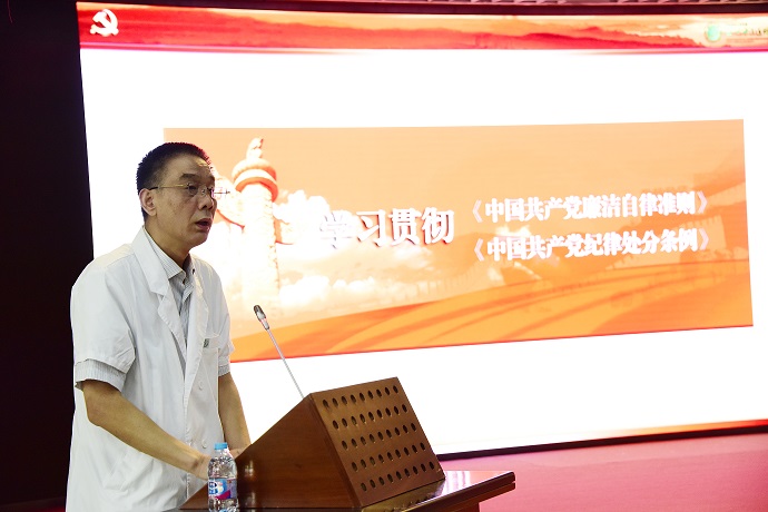 信彬书记以《遵循廉洁自律规范 恪守六大纪律》为题,结合医院实际,为全体党员讲“两学一做”学习教育专题党课。