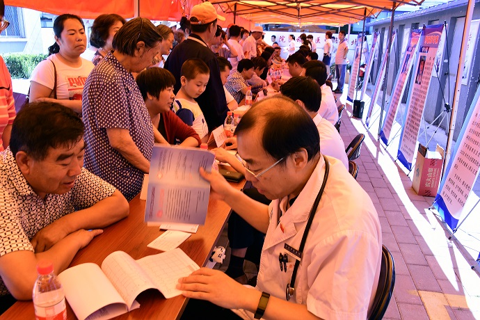 6月18日,建党95周年前夕,北京中医医院组织党员专家来到怀柔泉河街道滨湖社区举办大型义诊活动。