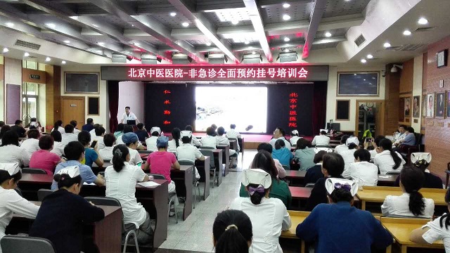 6月13日,我院对医生、护士、中层干部、志愿者、导医等进行“非急诊全面预约挂号”工作培训会,阐述医改重要性,讲解“非急诊全面预约挂号”工作的意义,提高全员的认识,确保该项工作顺利开展。(门诊部、宣传中心)