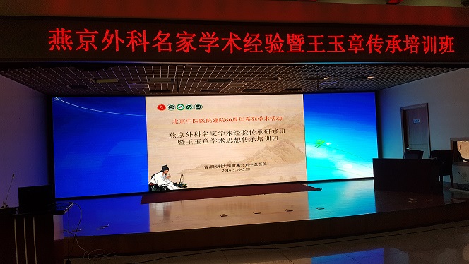 5月19-21日,由中华中医药学会主办,北京中医医院承办,中华中医药学会周围血管病分会、北京中医药学会外科专业委员会、北京中医医院顺义医院协办的“燕京外科名家学术经验传承研修班暨王玉章学术思想传承培训班”在我院召开。来自北京等13个省市的中医外科专家及医师、北京市名老中医传承工作室站及北京中医医院临床住院医师培训基地住院医师近160人与会。北京中医研究所副所长李萍、北京中医医院顺义医院执行院长王洪、中华中医药学会外科分会主任委员裴晓华、中国中西医结合学会周围血管病专业委员会主任委员杨博华,第五批全国名老中医吕培文教授、名老中医王玉章女儿王淑玲等领导和嘉宾出席研修班开幕式。