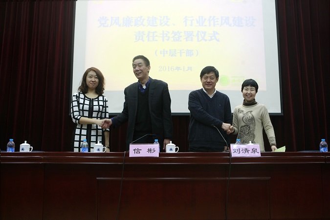 院党委委员张金霞主持第二天的会议。会上,党委书记信彬宣读了中层干部任职决定。党委书记信彬、院长刘清泉分别与责任人签署了聘书、党风廉政建设责任书、年度目标管理责任书等。刘清泉院长要求各科室要认真领会会议精神,在日常工作中狠抓落实。党委书记信彬在总结发言中充分肯定了2015年中层干部的付出,希望全体中层干部在2016年工作中求真务实、真抓实干,拿出具体工作措施,高标准地做好各项工作,做出更大成绩。(院办)