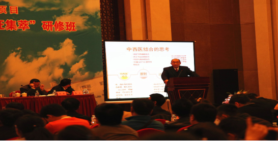 研修班上,郁老讲述了行医60载的经历,介绍了我院肿瘤科及中心实验室从小到大、由弱变强的发展历程,基于有效方药进行相关研究,积极探索中西医结合治疗肿瘤突破口的功能、目标。希望后辈成为仁心仁术、医德高尚、勤奋博学的良医。郁老弟子、副院长王笑民教授、肿瘤科张青教授系统讲述了郁老的学术思想及临床用药经验。刘清泉院长、肿瘤科研究室主任于明薇副主任,复旦大学附属肿瘤医院刘鲁明教授、山西中医学院马文辉教授、天津医科大学肿瘤医院吴雄志教授从中医理论、用药经验、临床研究和基础研究等各方面,结合其所在研究领域,对中西医结合治疗肿瘤等疑难疾病的诊疗思路做了精彩论述。会议体现了国内中医肿瘤学临床研究及基础研究水平,搭建了一个良好的交流平台。 (肿瘤科)