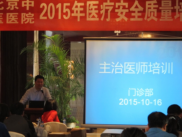 10月16日,我院医务处举办2015年度执行主治医师、医疗助理及院级质控员培训暨座谈会。会上,门诊部副主任唐武军、护理部主任郝丽及质控办主任宣雅波分别就门诊医疗质量与安全、医护配合保障医疗安全及执行主治医师职责等方面进行了培训。风湿病科执行主治医师邵培培就如何做好执行主治医师日常管理工作介绍了经验;呼吸科主任王玉光结合科室特点及科室发展目标介绍了呼吸科日常科室管理。