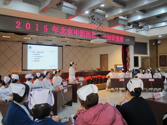 元月22日中午,“2015年护理知识竞赛决赛”在多功能厅举行,副院长刘东国、医务处处长吴春华、部分科主任及百余名护理人员现场观摩。参赛的六支代表队历经初赛,从18个参赛队、54名选手中胜出进入决赛。由护理部主任、护理质控组成员及部分护士长组成的评委本着公开、公平、公正的原则为选手进行现场打分。竞赛设置个人必答、小组必答、小组抢答及观众参与等几个环节,赛题以2014版《护士必读》为主,包括基础护理及临床护理两部分内容。各参赛队队员仪表端庄、精神饱满,整个比赛过程紧张有序,有条不紊。互动环节观众热情高涨,争相作答。抢答题环节更是紧张激烈。经过近两个小时的激烈角逐,各奖项落花有主。