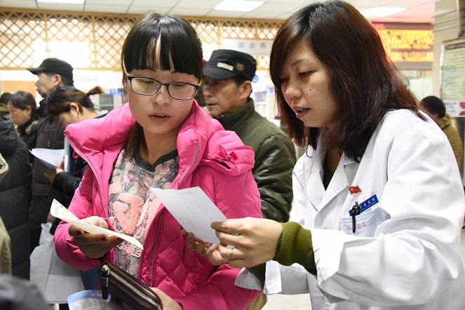 11月17日至12月31日,机关支部在门诊药房开展“深入一线我们在行动”主题活动。15个科室33人次参与。期间,正值年底日门诊量破万之时,5个取药窗口全部开放,同时过百人排队取药,本就不大的区域显得更加拥挤。我院门诊楼按分类有中西药房、中药饮片、综合药房、科研药房、儿科饮片药房、肝病药房(饮片)、代煎室等8个,分布在不同区域,为提高效率,减少患者等候时间,尽快舒缓大厅拥堵,参与活动的人员尝试从等待患者询问,转为主动征询,从队尾开始按患者的不同处方进行分类引导,同时做好解释说明和征求服务意见的工作,这样既让患者焦灼的心慢慢放松下来,又使取药工作井然有序,效率自然也提高了。
