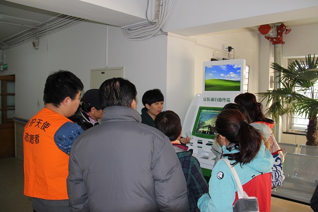 11月28日上午,组织志愿者到北京市120急救中心进行培训学习。志愿者详细了解了120工作流程、观摩急救演练、并学习了心肺复苏术等紧急救护技能。12月4日,组织志愿者学习使用医院新近上线运行的“京医通”自助机,通过讲课、实际操作了解其功能和服务内容。