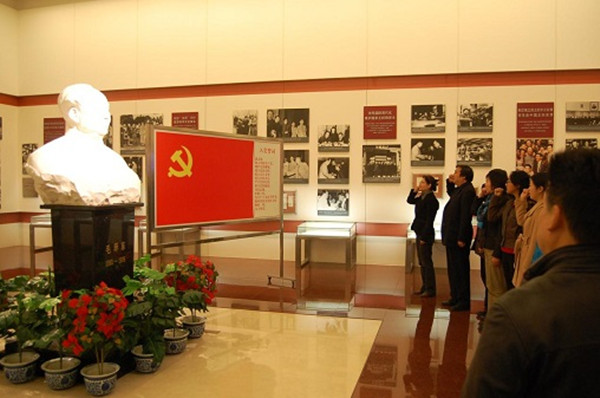 在鲜红的党旗前,全体党员庄严举起右手,重温入党誓词,铿锵有力的誓词响彻纪念室,每位党员的心灵再次受到强烈的震撼。全所党员表示要更加脚踏实地地工作,全心全意为患者服务。 (药研所党支部)